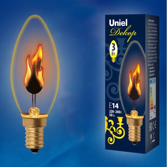 Лампа декоративная "эффект пламени" 3Вт 220В свеча Е14 UNIEL UL-00002981