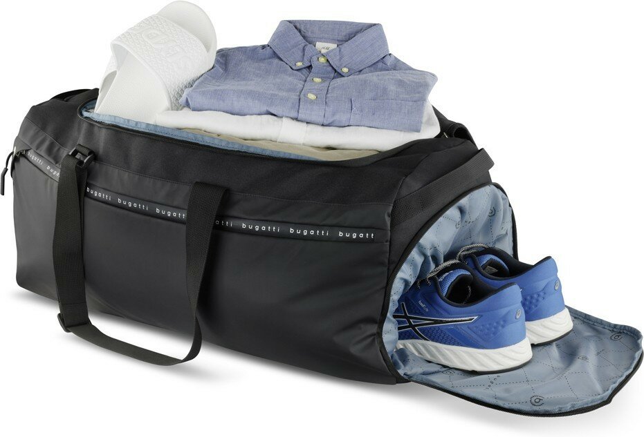 Сумка спортивная BUGATTI Blanc Delight, чёрная, нейлон RPET600D/тарпаулин/полиэстер, 47х23х28 см, 22 л 49450001