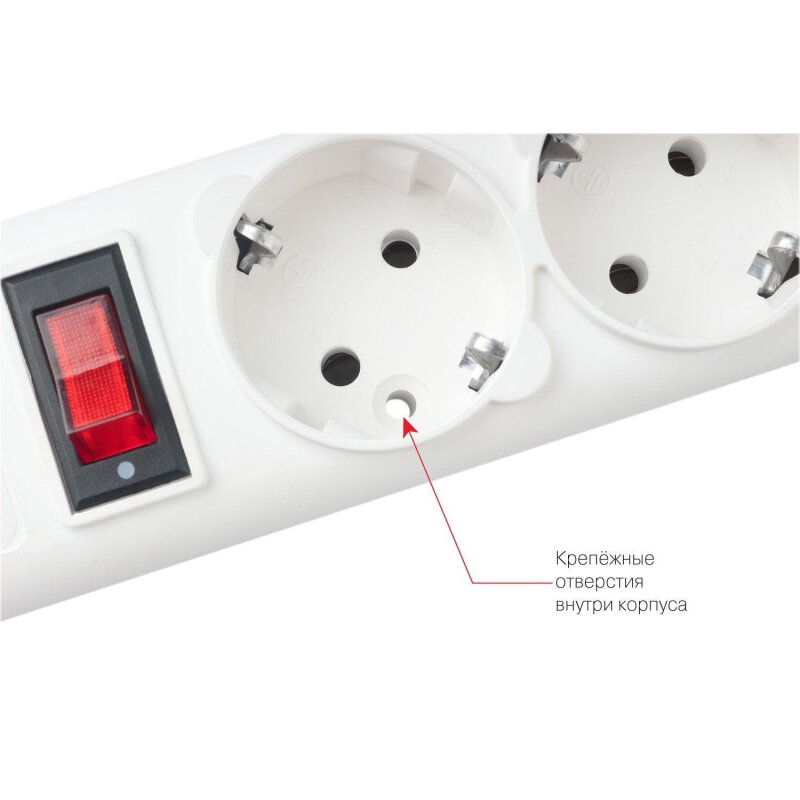 Сетевой фильтр РС 1,9 м 5 гнезд, цвет белый 10А