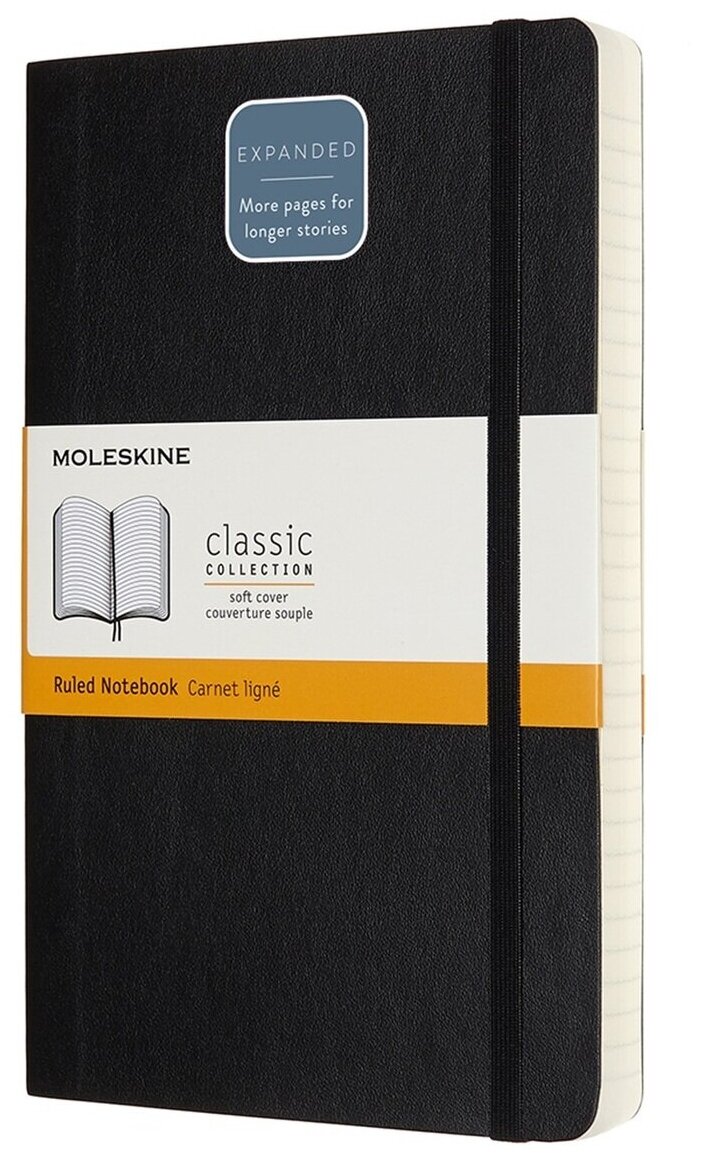 Блокнот Moleskine CLASSIC SOFT EXPENDED QP616EXP Large 130х210мм 400стр. линейка мягкая обложка черн информация: