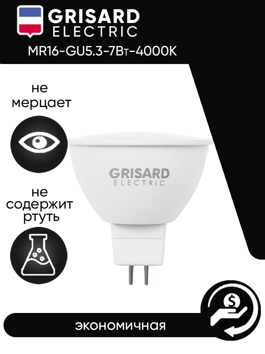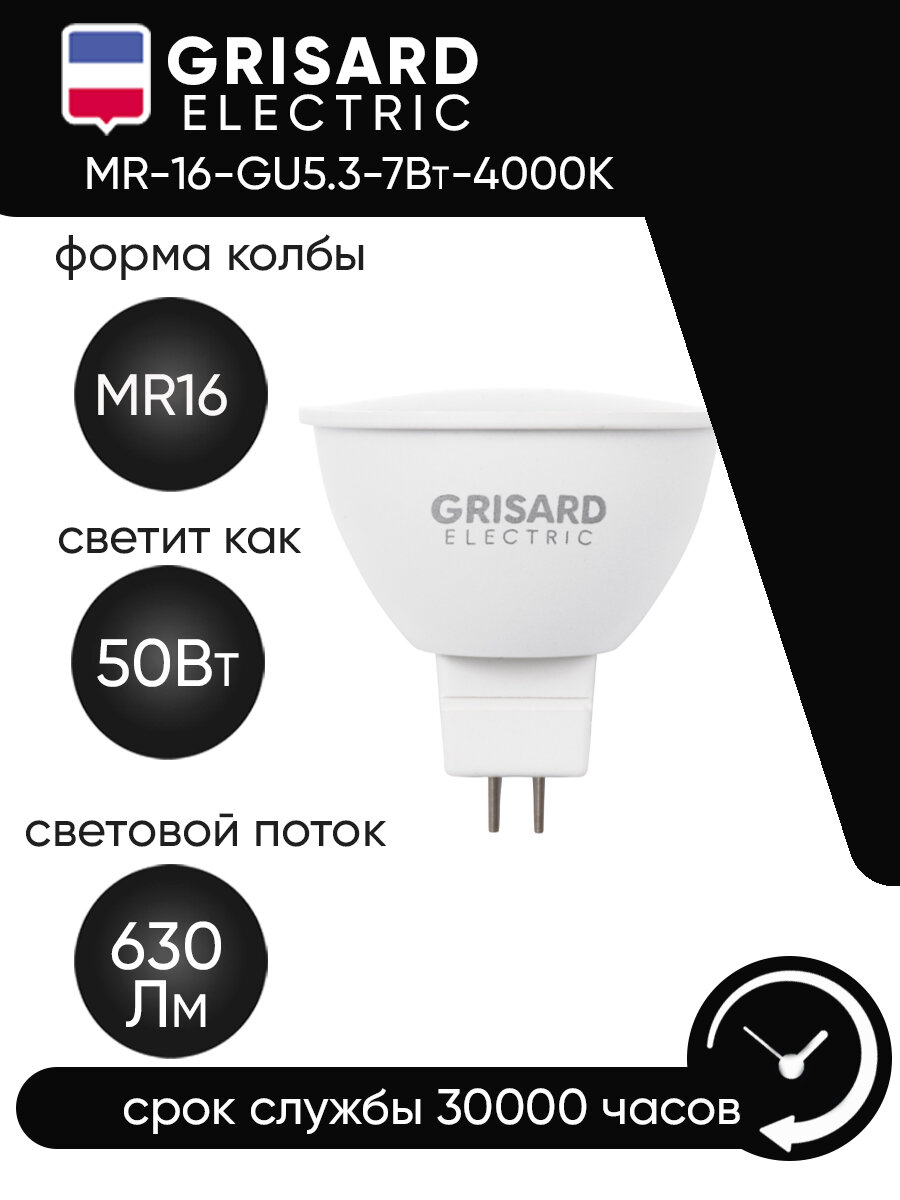 Отзывы на Лампа светодиодная GRISARD ELECTRIC MR16 софит GU5.3 7Вт 4000К 220В 1шт
