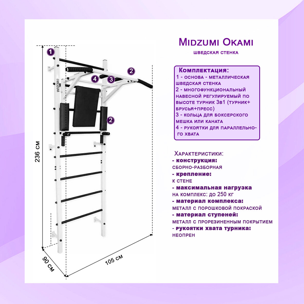 Шведская стенка Midzumi Okami (турник-брусья 3в1) информация: