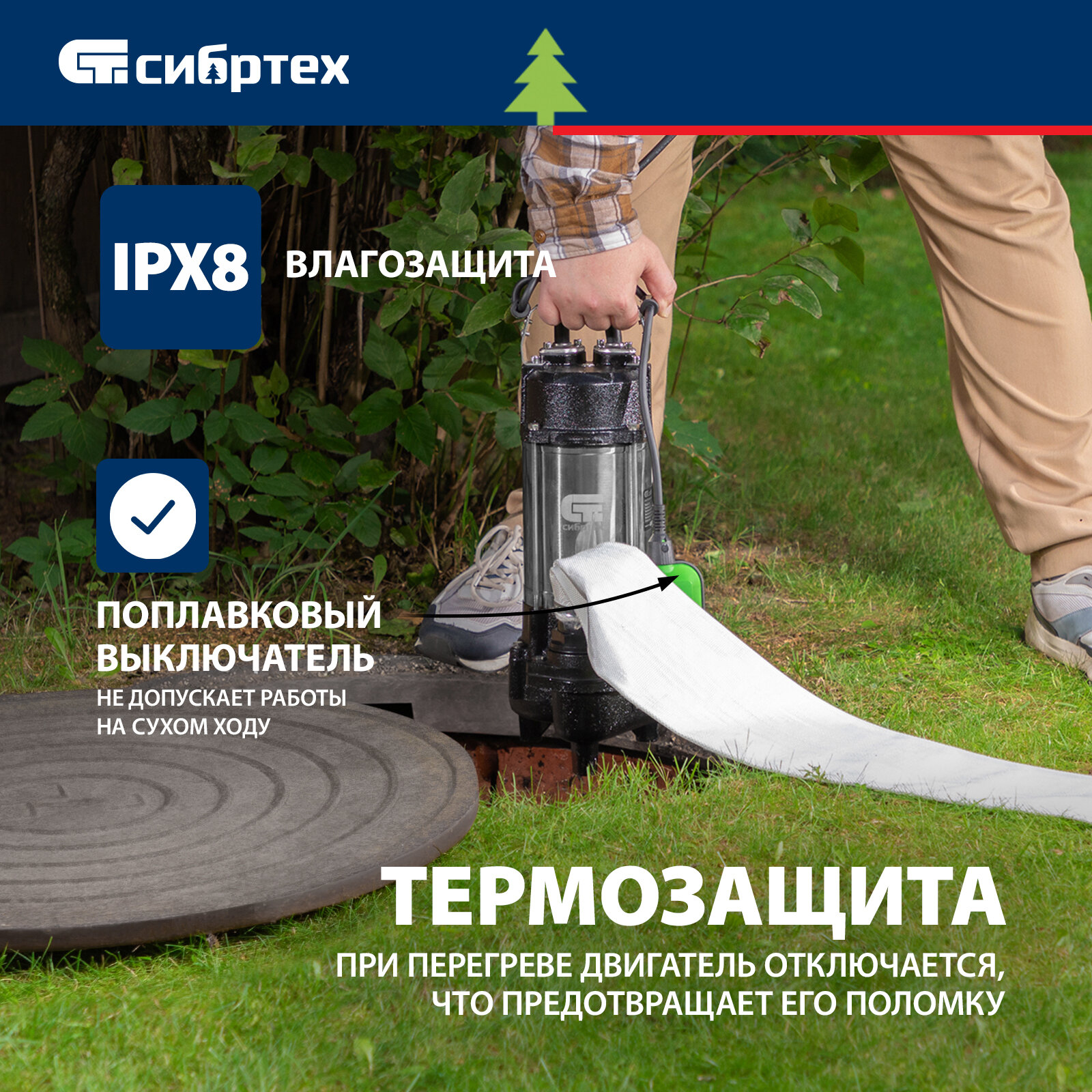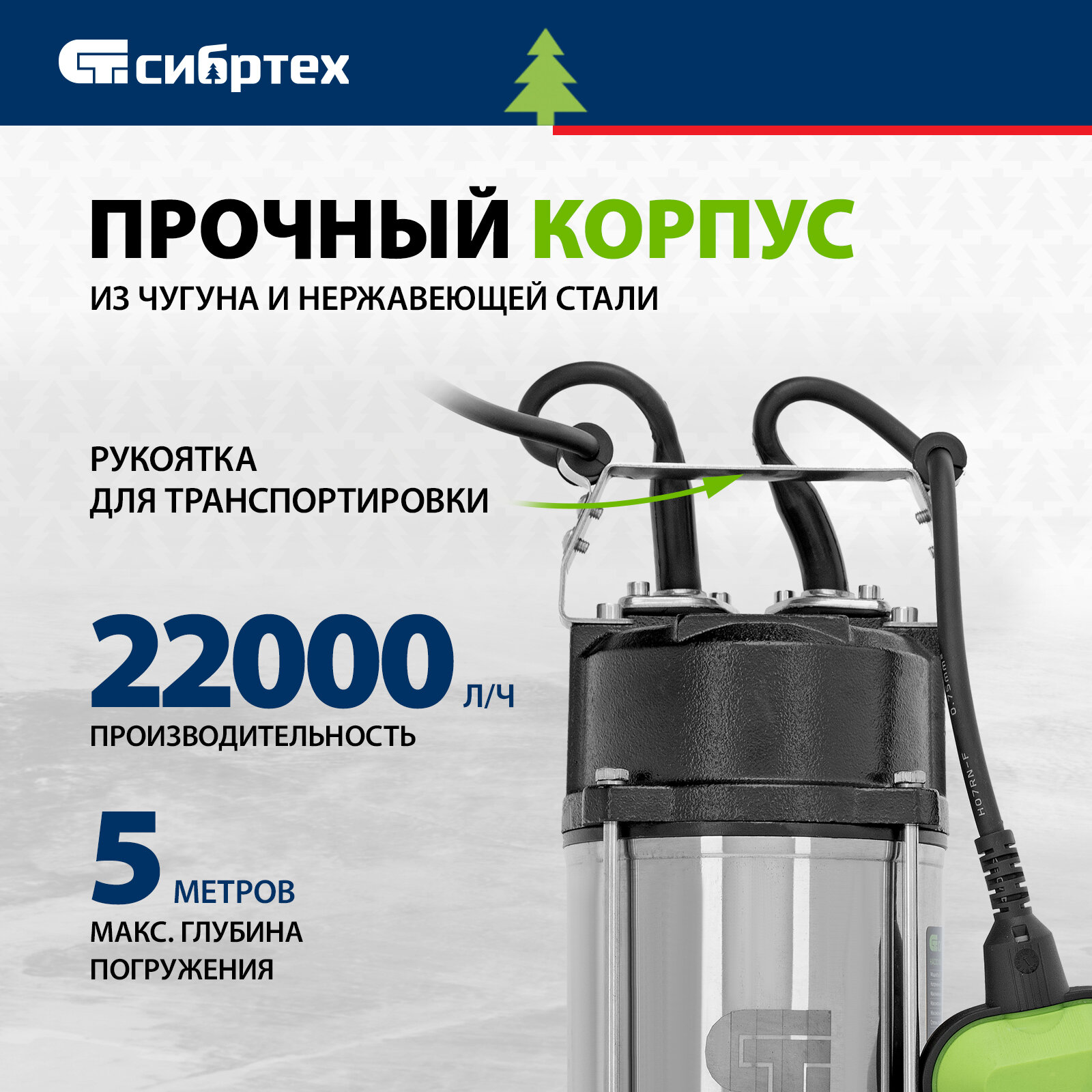 Фекальный насос СФН750, 750 Вт, напор 16 м, 22000 л/ч Сибртех информация: