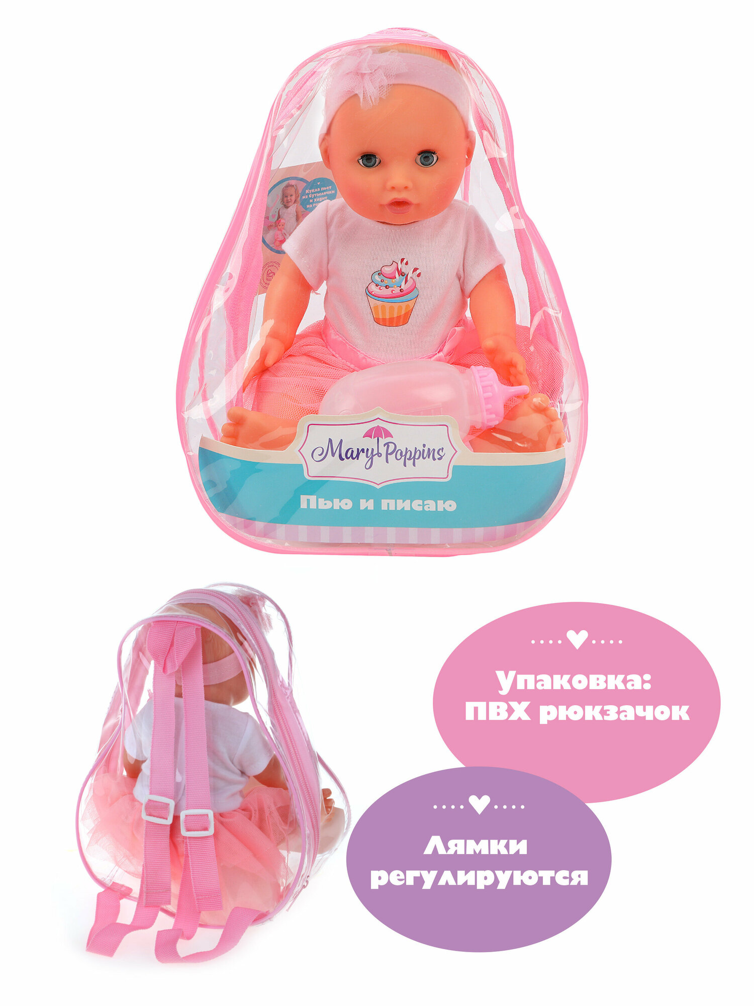 Отзывы на Кукла пупс девочка с горшком и бутылочкой в рюкзаке Пью и писаю 30 см Mary Poppins