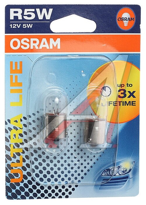 Комплект ламп накаливания блистер 2шт R5W 12V 5W BA15S ULTRA LIFE (в 3 раза увеличен срок службы по сравнению со стандартной лампой), 5007ULT02B OSRAM 5007ULT-02B