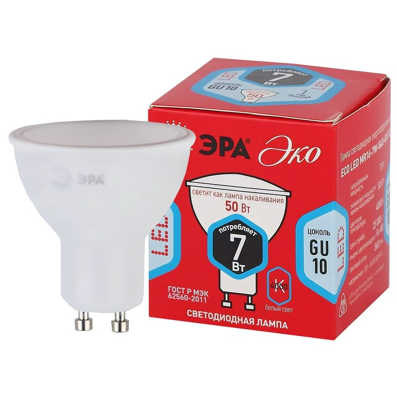 Лампа светодиодная ЭРА 7Вт GU10 560Лм 4000K спот информация: