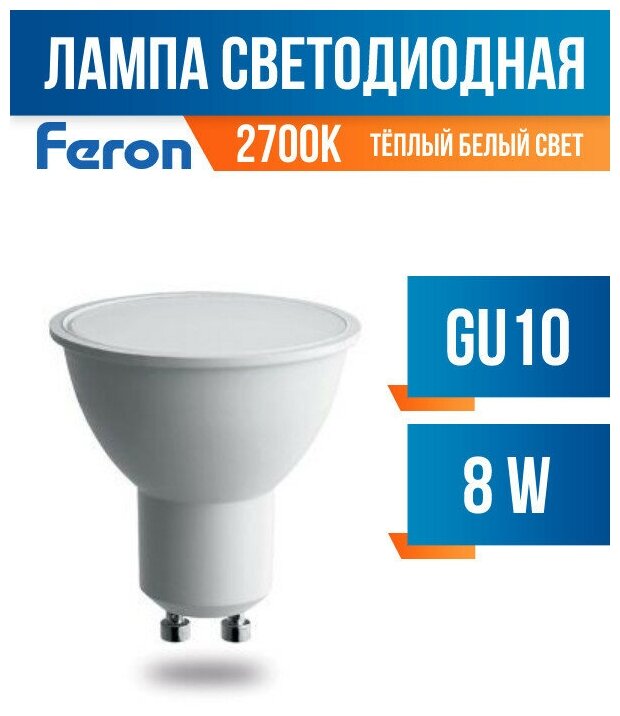 FERON Лампа светодиодная PRO LB-1608 GU10 8W 2700K 38092