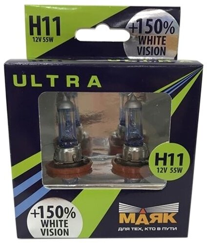 Лампа Галогенная H11 12V 55W "Маяк" White Vision Ультра (Pgj19-2+150%) (2 Шт.) Маяк арт. 82110WV+150