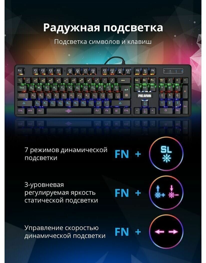 Клавиатура Defender Paladin GK-370L RU механическая Rainbow 45371