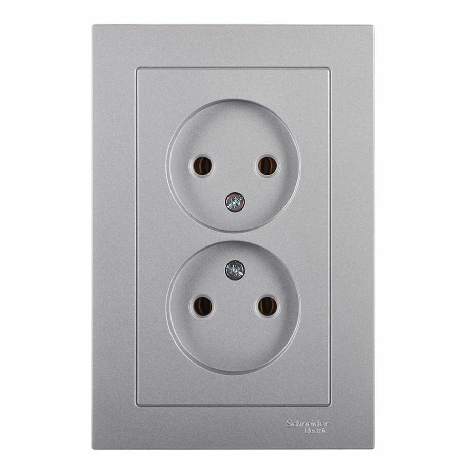 Розетка электрическая двухместная Systeme Electric Atlas Design без заземления в сборе 16А, Алюминий ATN000320 - 10 шт. 7 715 ₽