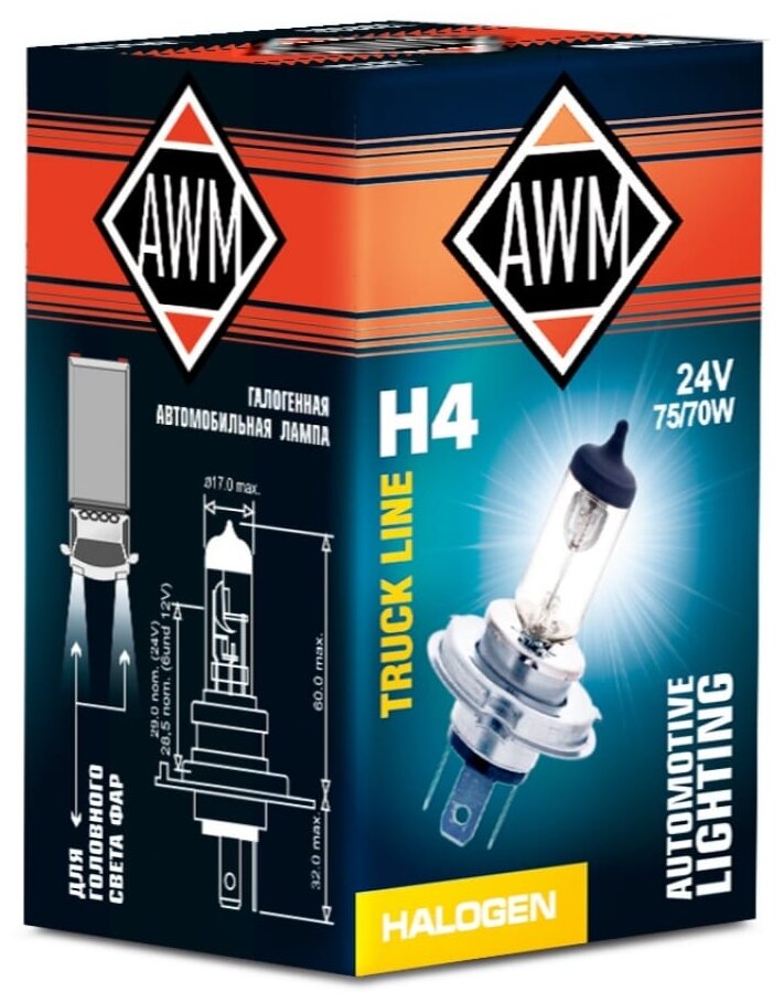 Лампа H4 24v 75/70w (P43t) Для Грузовых Авто Awm Шт AWM арт. 410300018