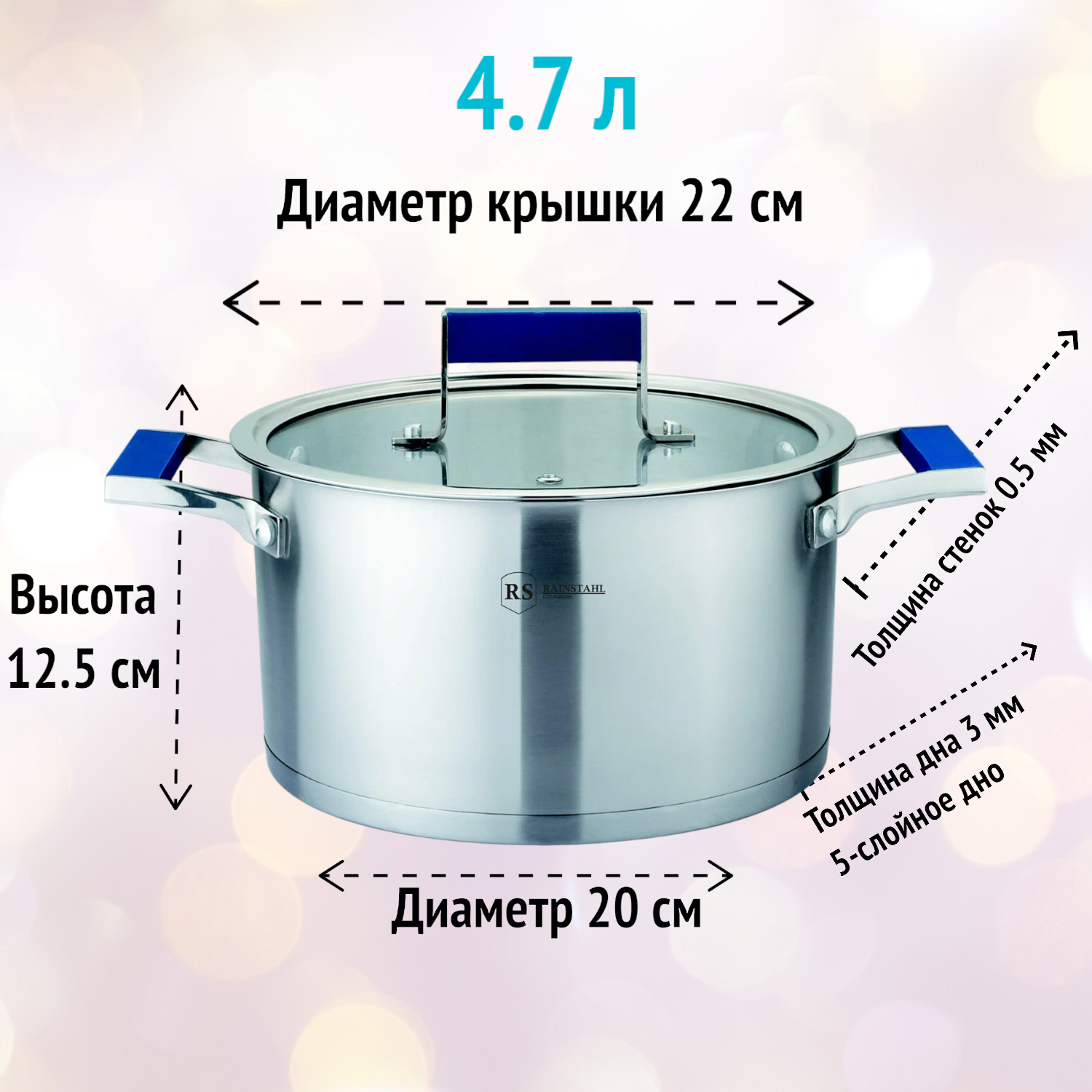 Кастрюля 4.7 л из нержавеющей стали Rainstahl для индукционных плит, RS/CS 2912-22 / Blue информация: