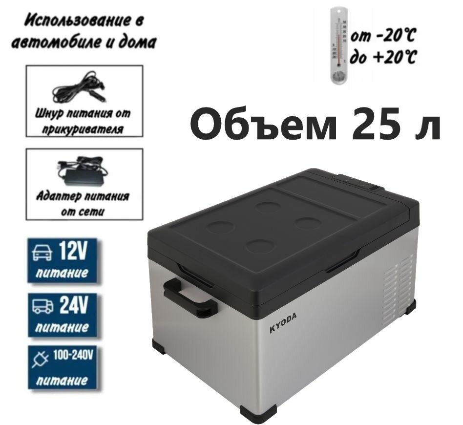 Автохолодильник Kyoda CS25, однокамерный, объем 25 л, вес 12 кг информация:
