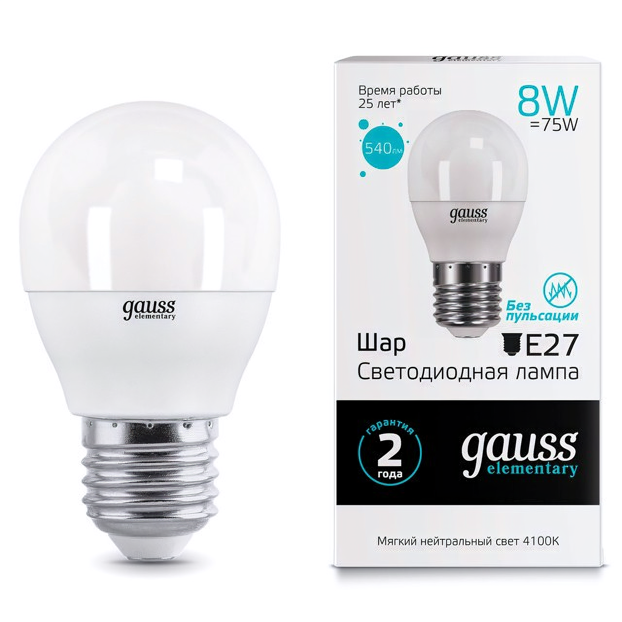 Лампа Gauss elementary 8вт е27 540лм led 4100к шар информация: