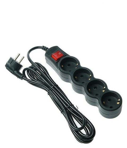 Сетевой фильтр 5bites SP4B-150 4S, 4 розетки, 5 м, 10 А, 3х0.75 мм2, с выкл., черный