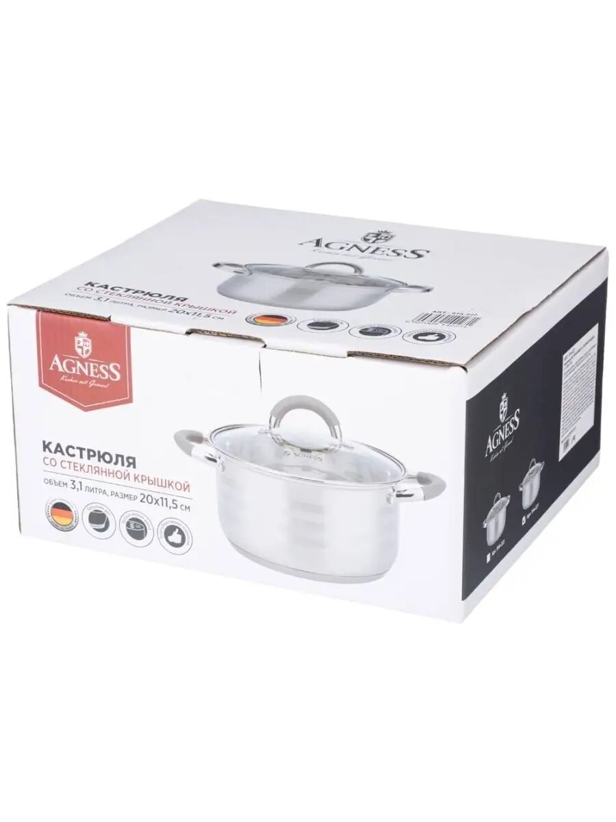 Agness Кастрюля AGNESS премиум экселент 24X11 СМ, 4,9 Л ИНД ДНО, трехслойное покр GRANIT, PFOA FREE