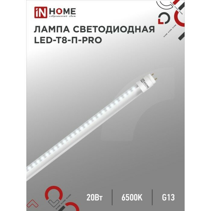 Лампа светодиодная LED-T8-П-PRO 20Вт 6500К G13 1620лм 230В 1200мм прозр. IN HOME 4690612031002 (1 шт.) информация: