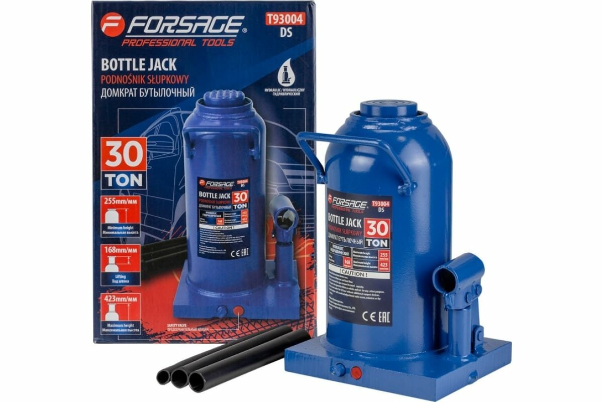 Домкрат бутылочный 30 т, высота подхвата 255 мм, высота подъма 405 мм, с клапаном FORSAGE F-T93004 | цена за 1 шт