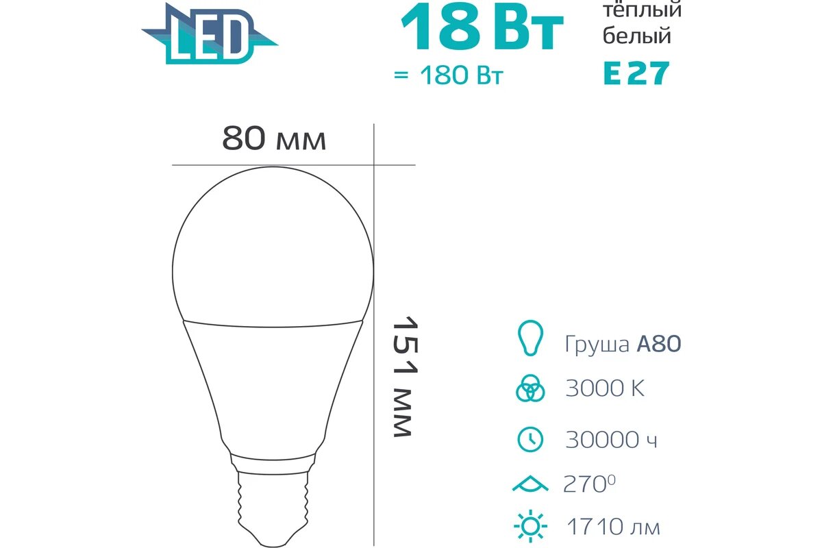 | Эквивалент лампы накаливания | 180 Вт |