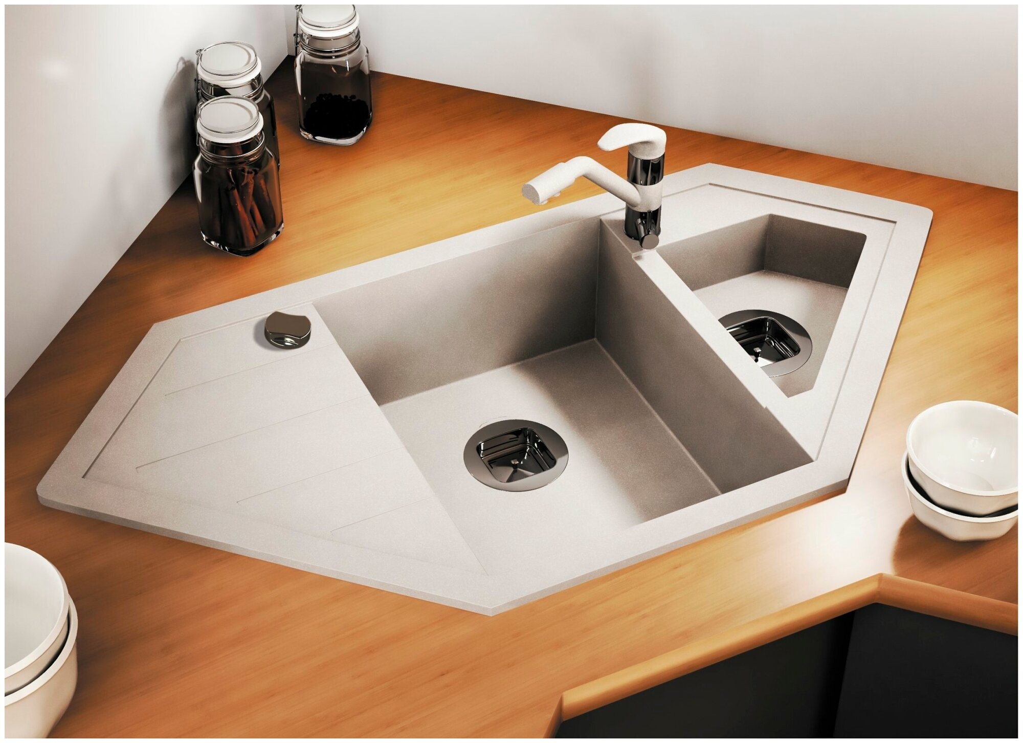 Мойка для кухни TOLERO Classic R-114 каменная врезная угловая с отверстием под смеситель. Кварц (№101 Бежевый)