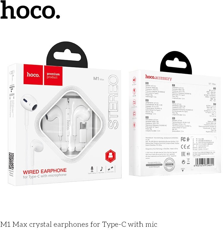 Наушники внутриканальные HOCO M1, Max, Type-C, цвет: белый