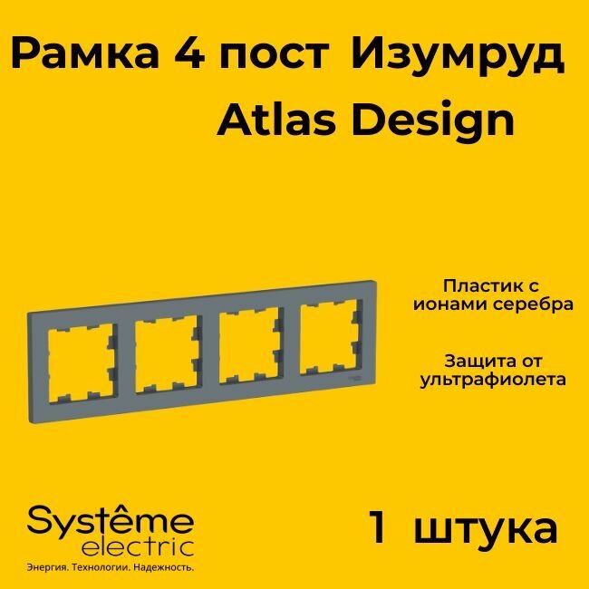 Рамка четырехместная Systeme Electric Atlas Design изумруд ATN000804 - 1 шт. информация: