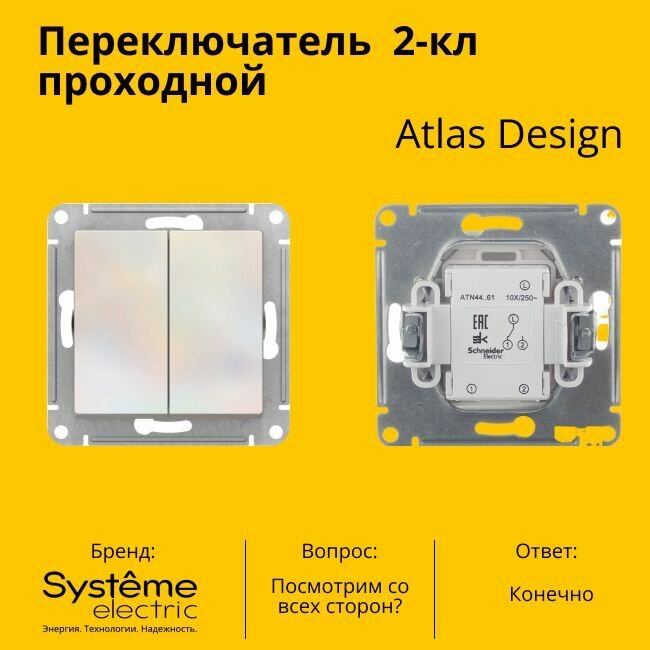 Отзывы на Переключатель SCHNEIDER ELECTRIC ATLASDESIGN, сх.6/2, 10АХ, механизм, жемчуг ATN000465