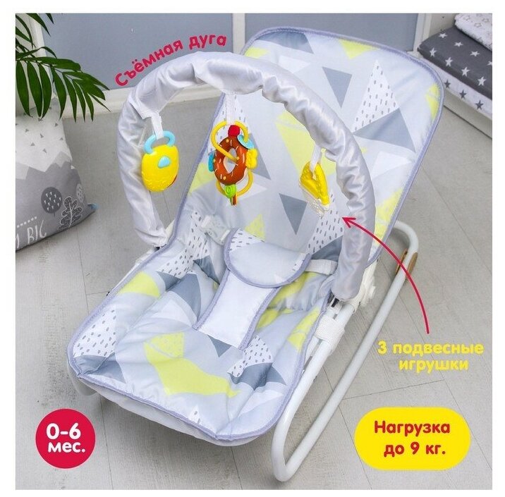 Шезлонг - качалка для новорождённых «Геометрия», игровая дуга, игрушки микс 5349613 информация: