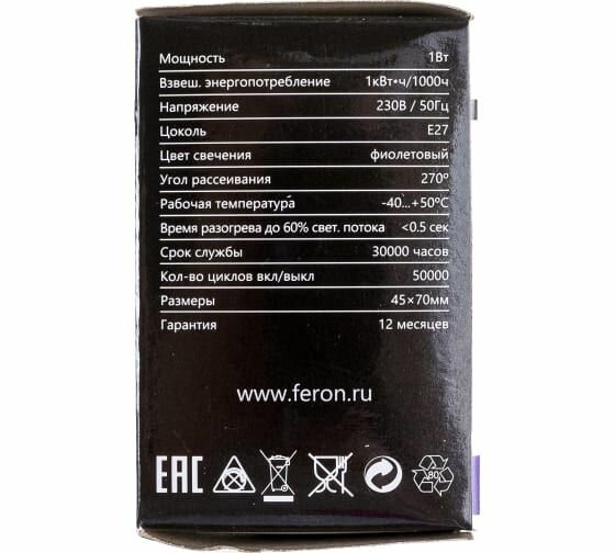 Отзывы на (15 шт.) Светодиодная лампочка Feron шар G45 E27 1W фиолетовый 70x45 д/гирлянды Белт Лайт LB-37 38125