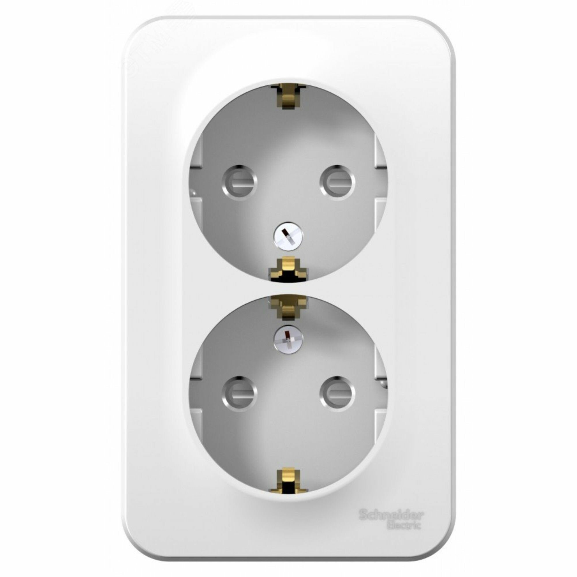 Розетка двойная Schneider Electric Blanca с заземлением и защитными шторками, открытый монтаж. Белый
