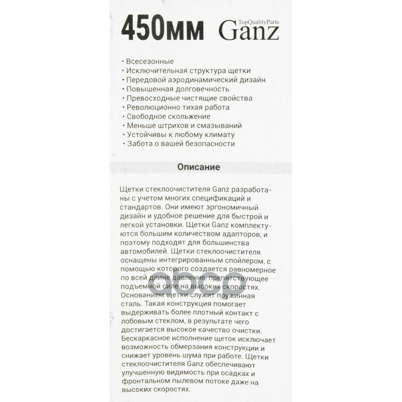 GANZ GIS01004 Щетка стеклоочистителя 450 мм каркасная 1 шт (4 адаптера) GANZ ECO GIS01004 информация: