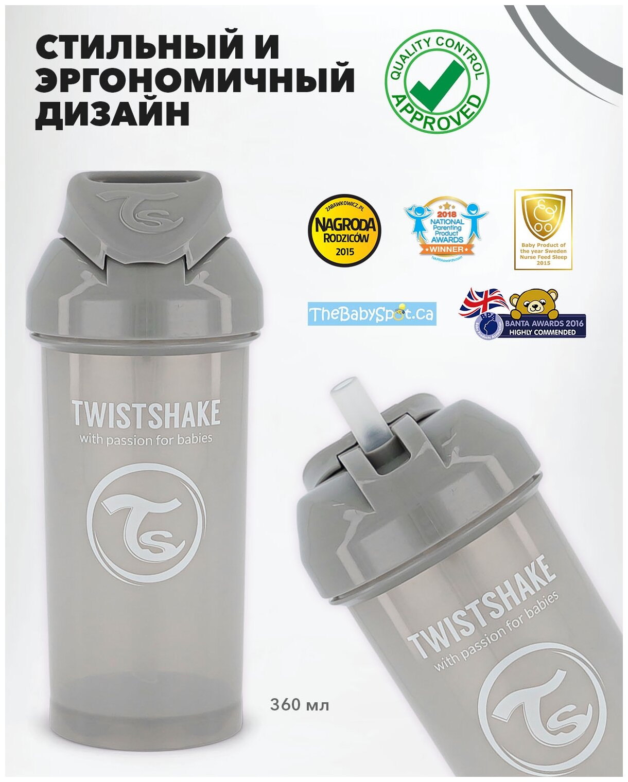 Отзывы на Поильник с трубочкой Twistshake (Straw Cup) 360 мл. Пастельный серый (Pastel Grey). Возраст 12+m. Арт. 78680