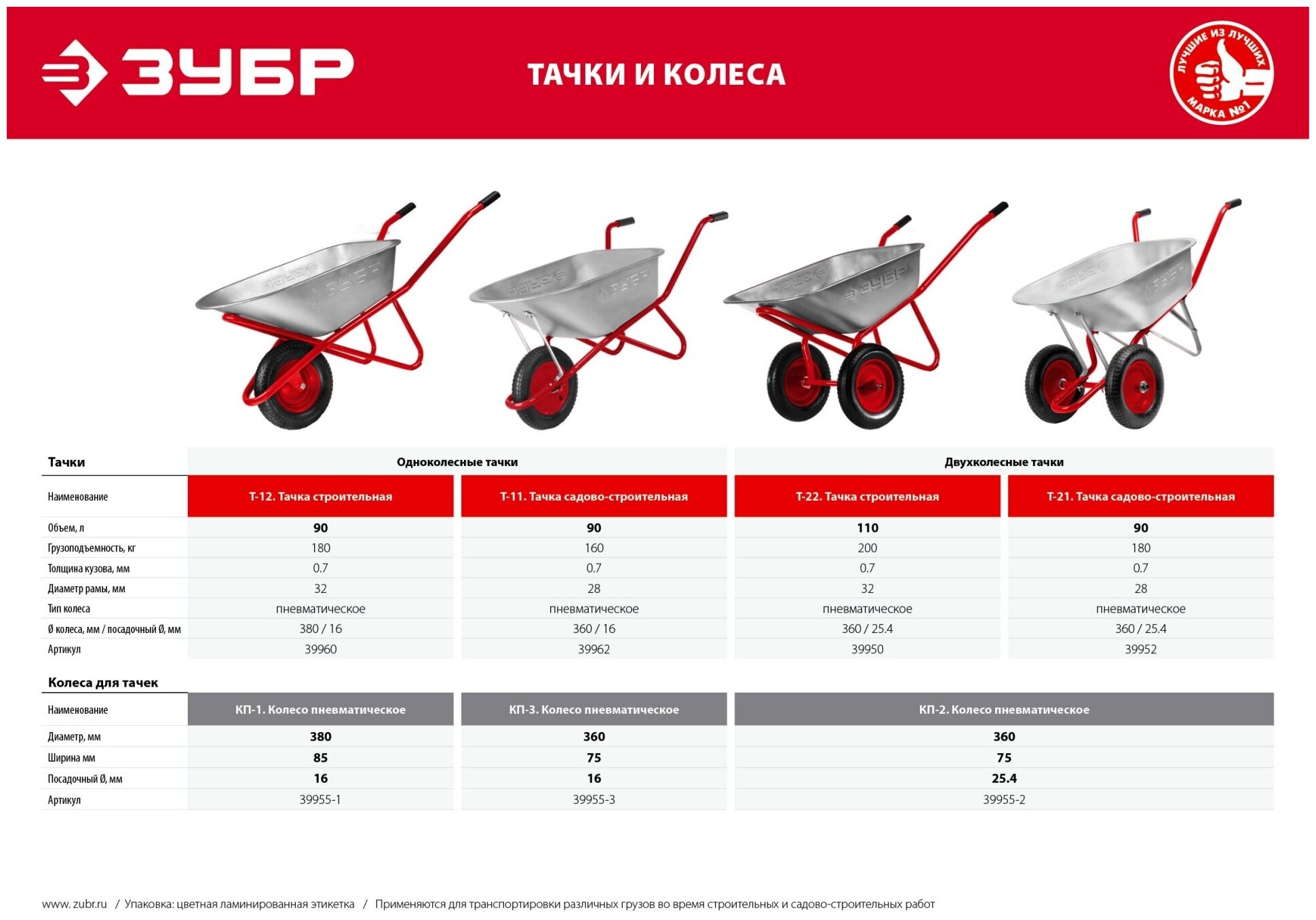 10 цен на ЗУБР Т-21, 90 л, 180 кг, двухколесная, оцинкованная сталь, стальные опоры и ось, садово-строительная тачка (39952)