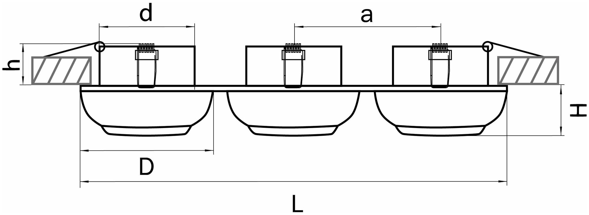| Дополнительная информация | угол поворота по горизонтали 45°; диаметр основания (отверстия встройки) 3х65 мм; глубина основания (отверстия встройки) 30 мм; типоразмер лампы HP16 |