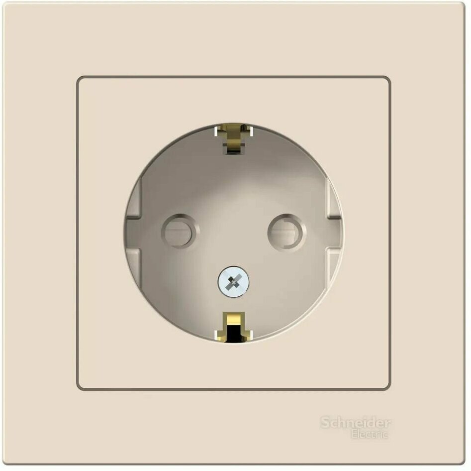 Розетка ATLASDESIGN, скрытый монтаж, с заземлением, со шторками, бежевый | код. ATN000244 | Schneider Electric (5шт. в упак.)