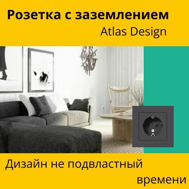 Розетка с заземлением, со шторками, в сборе, карбон Schneider Electric AtlasDesign (комплект 3шт) 2 136 ₽