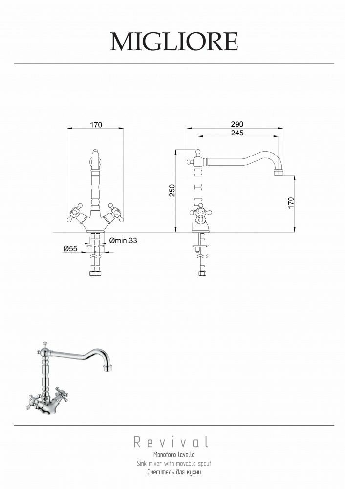 Смеситель Migliore Revival 18207 для кухонной мойки, бронза информация: