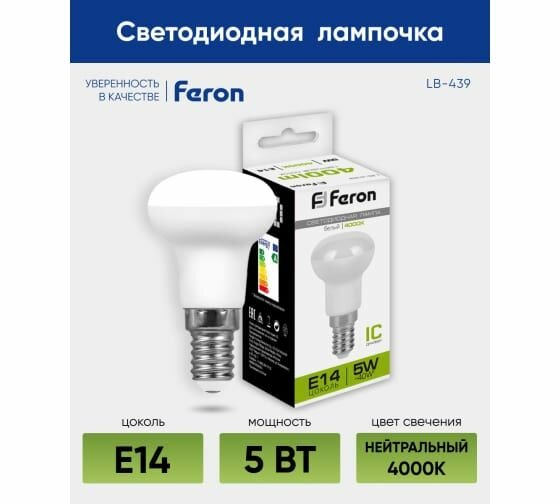 Светодиодная лампа FERON LB-439 E14 5W 4000K 25517 информация: