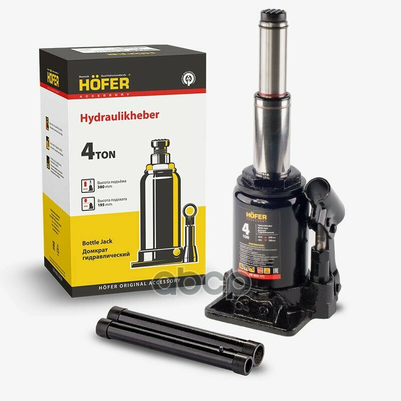 Домкрат Бутылочный (4 Т) (150-345 Мм) "Hofer" (Гидравлический, Двухштоковый) HOFER арт. HF 902 171