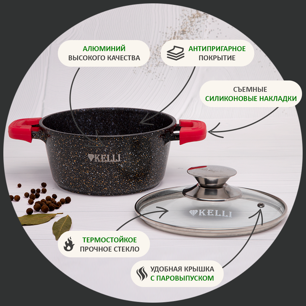 Кастрюля с крышкой и мраморным покрытием Kelli 1.6 л TKL-4092-16 для индукционной плиты и всех типов плит