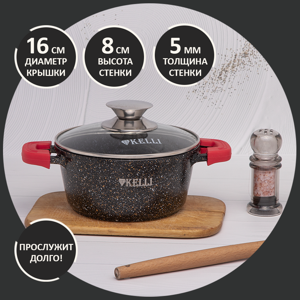 Кастрюля Kelli KL-4092-16 с гранитным покрытием 1,6л 1 288 ₽
