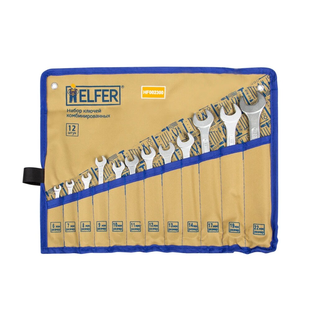 Набор ключей комбинированных 12 пр. 6-14,17,19, 22 мм сумка HELFER KRAFT HF002300 | цена за 1 шт