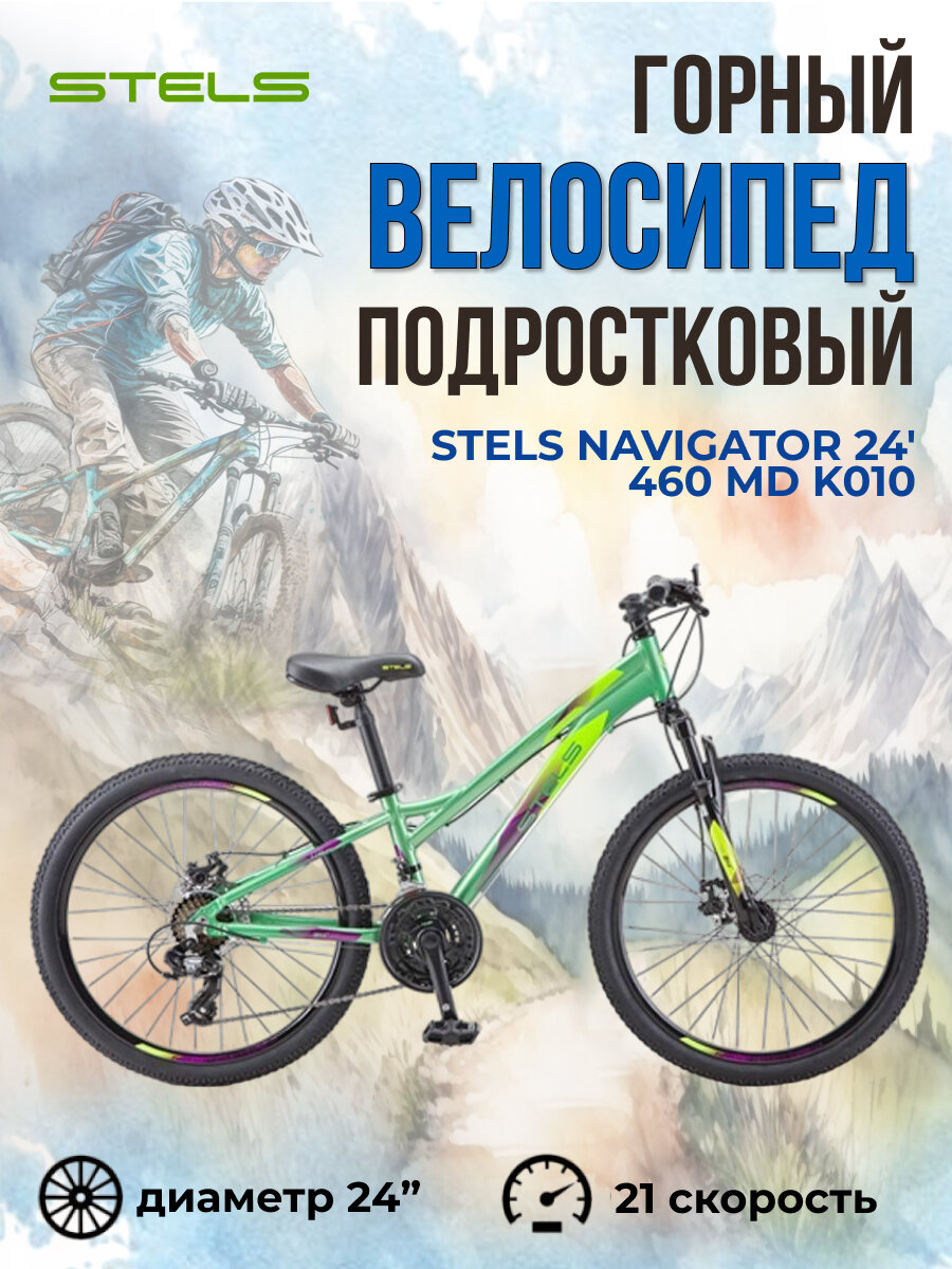 Велосипед подростковый горный STELS NAVIGATOR-460 MD K010, 24", рама 11", зеленый информация: