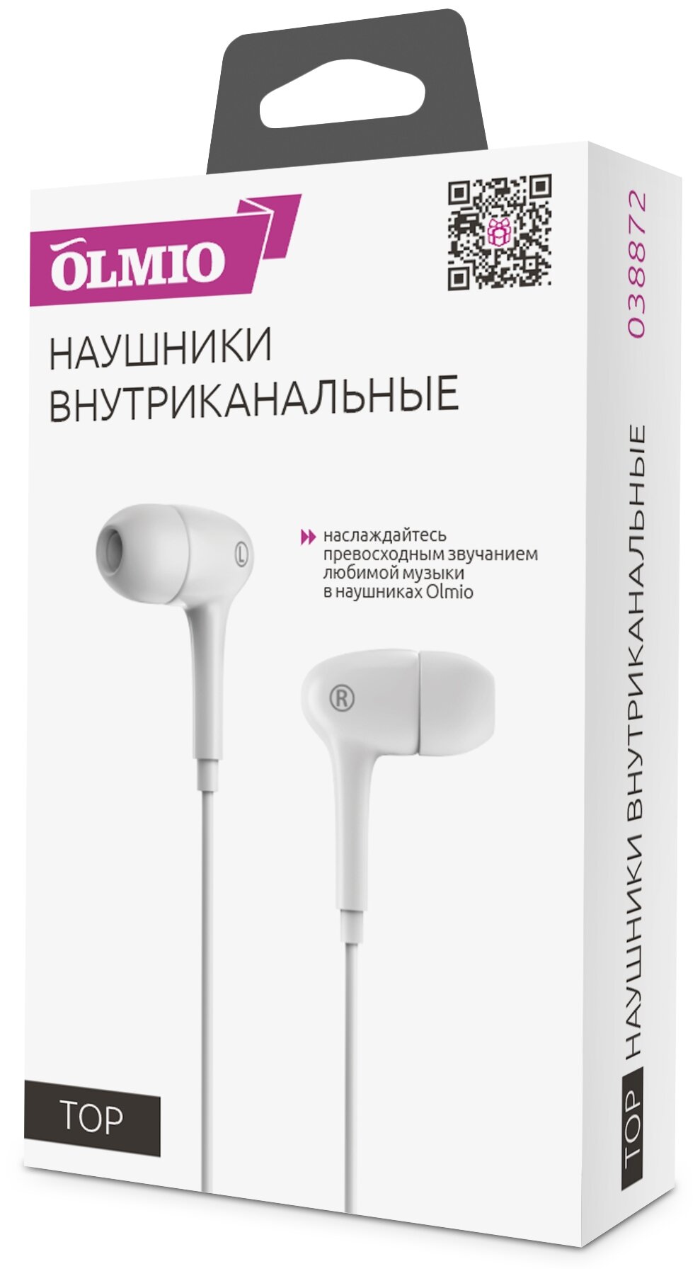 Наушники OLMIO Top, mini jack 3.5 mm, белый