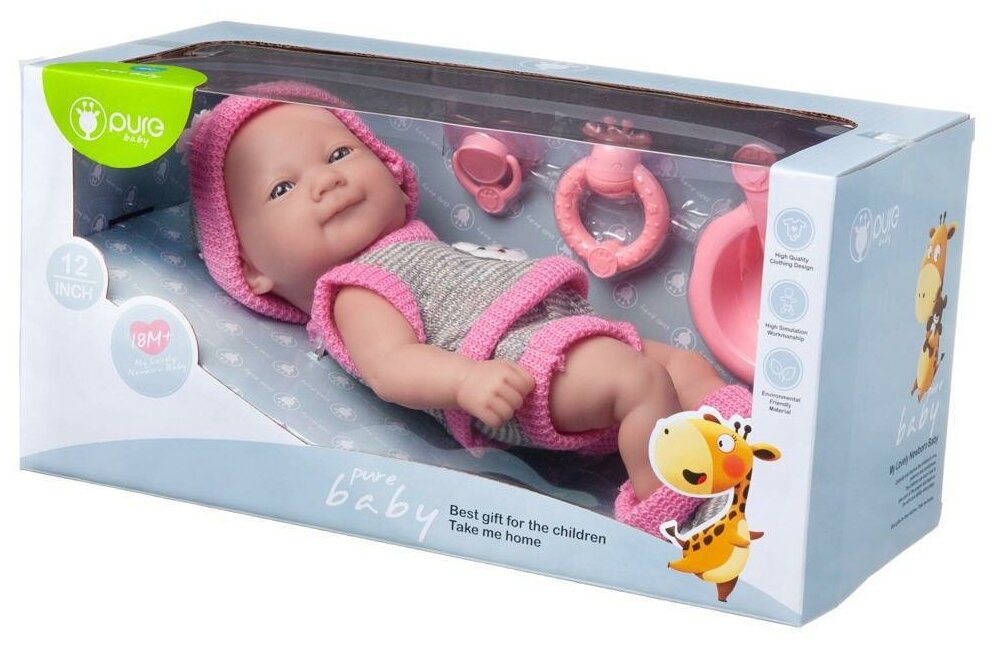 Отзывы на Пупс Pure Baby, 30см, в серых кофточке, шортиках, шапочке и носочках, с аксессуарами, в коробке - Junfa Toys [WJ-B9965]