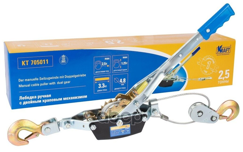 KRAFT KT 705012 Лебедка ручная с двойным храповым механизмом 3Т KRAFT KT 705012