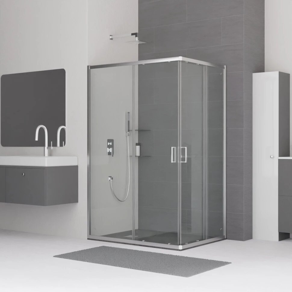 Душевое ограждение уголок SANTREK Iris-CR-900-C-Chrome 900*900*1850 Г-обр. стекло Прозр 6мм, профиль Хром