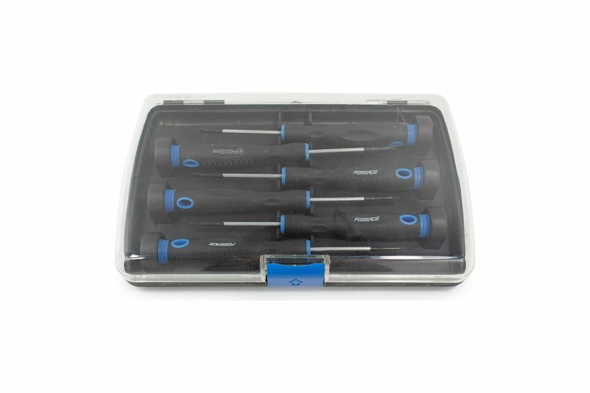 FORSAGE F-2066 Набор отверток ювелирных, 6 пр: SL2.0, SL2.4, SL3.0, PH00, PH0, PH1, L= 50 мм, в пластиковом держателе