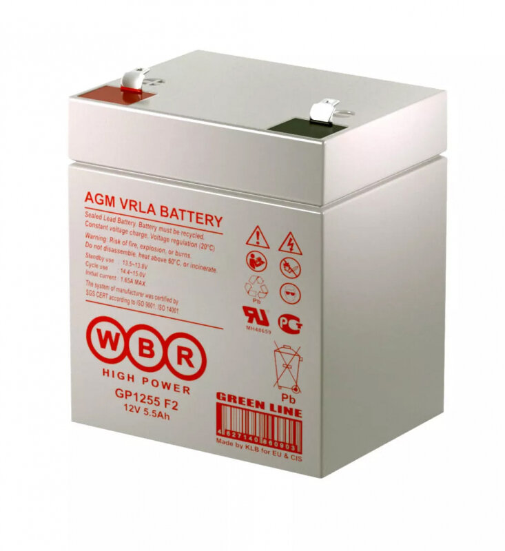 Аккумулятор WBR GP-1255 (12В, 5.5Ач / 12V, 5.5Ah / вывод F2) информация: