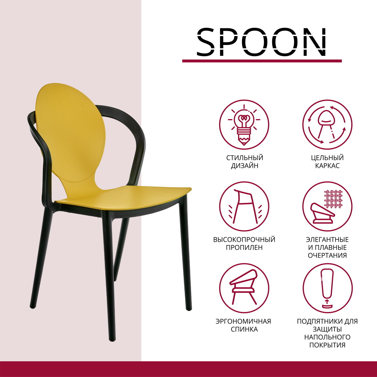 Отзывы на Стулья для кухни комплект 2 шт пластиковые со спинкой SPOON горчичный